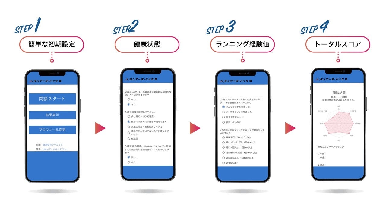株式会社メディカルリテラシー(本社:練馬区、代表取締役:小林 秀平)は、約5分の問診によりマラソン大会出走前に心肺停止のリスク因子を特定するランナー健康状態チェックアプリ「ランナーズ・ドック」の提供を2023年1月より開始しました。大規模大会としては1月29日開催の「第20回新宿シティハーフマラソン・区民健康マラソン」において、多くの出走ランナーにご利用いただきました。