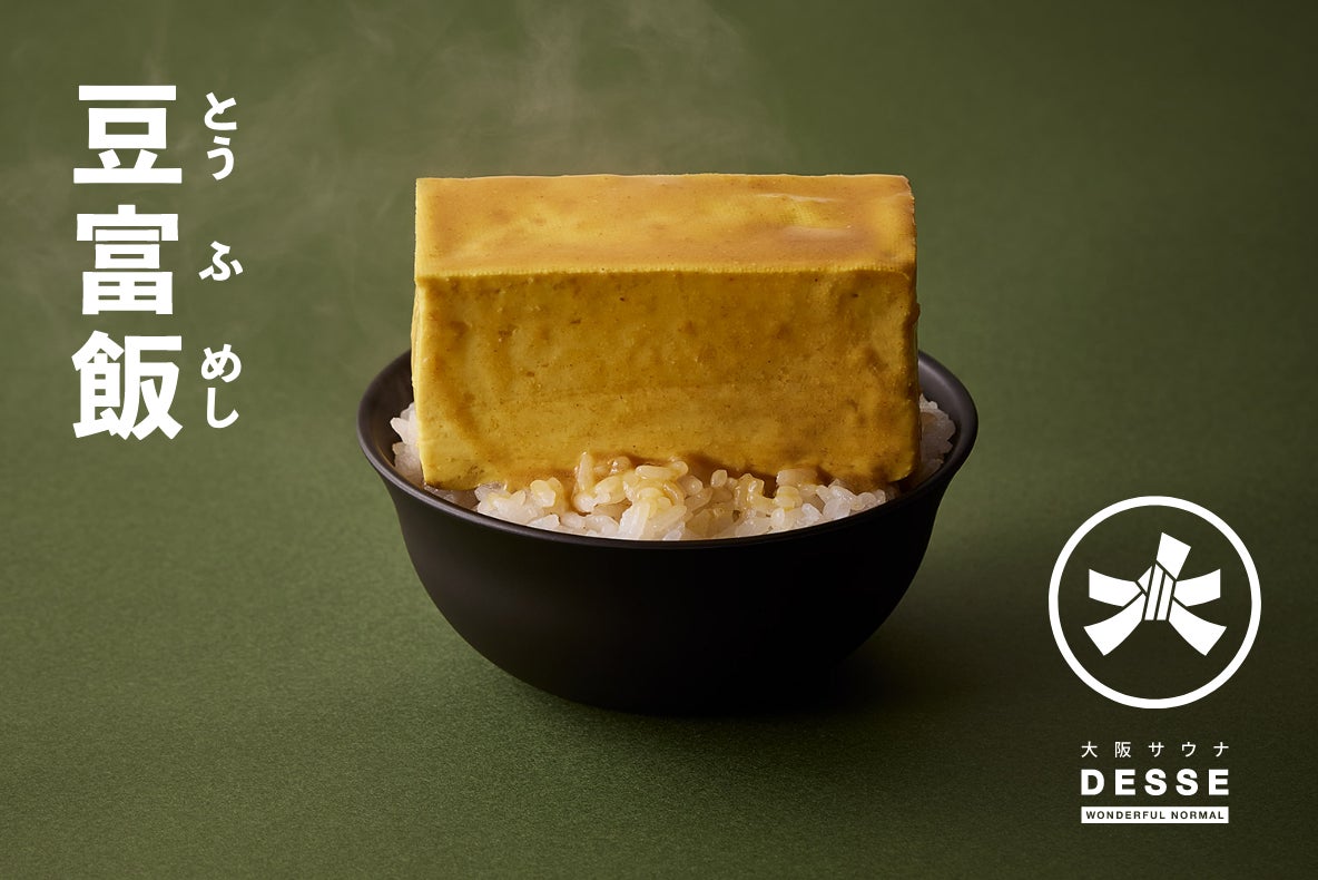 カレーおでんのスープが染み込んだお豆富をご飯にのせたインパクトのあるこの一品。豆富マイスター工藤詩織(くどうしおり)氏セレクトによる大豆の風味がしっかりと残るお豆腐とカレー風味がふっくらと炊き上げたお米とよく合います。サウナで汗をかいた後は、サウナドリンクに変わって水分チャージ。
