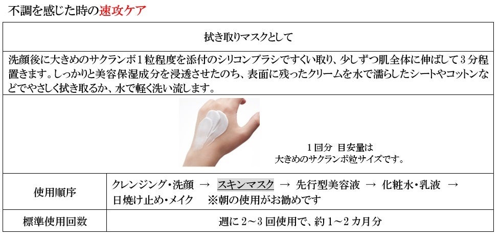 ◆寝ている間に効率良く集中ケアができるスリープマスクと、速攻ケアとして肌をスピーディーに整えるふき取りマスクのW(ダブル)使いができる、塗るタイプのクリーム状マスクです。