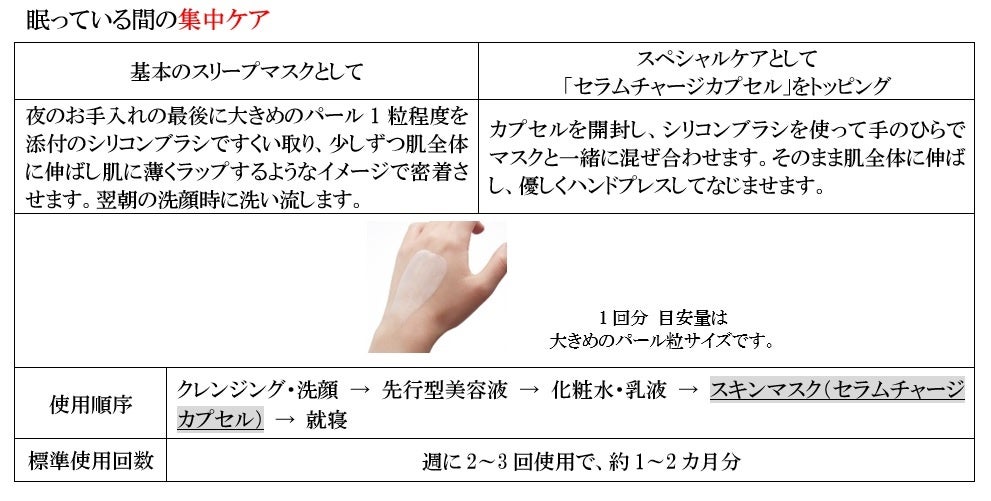 「BRANCHIC」は、「目覚め、高まる、私の冴え顔」をコンセプトとし、デカペプチド-4*によるメルケル細胞活性化に着目した高機能プレステージブランドです。メインターゲットは美容意識が高い30代以降の女性とし、確かなエイジングケア**を提供しています。忙しい日常生活を送るターゲット層は、日々の睡眠不足やストレスなどで肌の調子を崩しやすく、乾燥やキメの乱れ、くすみなどの不調が肌に現れがちです。そのため、限られた時間の中で高いスキンケア効果が得られることを求め、すぐに肌実感ができる速攻集中ケアや時間を効率的に使えるアイテムに高いニーズがあります。そこで、寝ている間に効率良く集中ケアができるスリープマスクと、速攻ケアとして肌をスピーディーに整えるふき取りマスクのW(ダブル)使いができる「スキンマスク」と、マスクに混ぜてより美容効果が期待できる100%植物由来の美容オイル「セラムチャージカプセル」を発売します。
