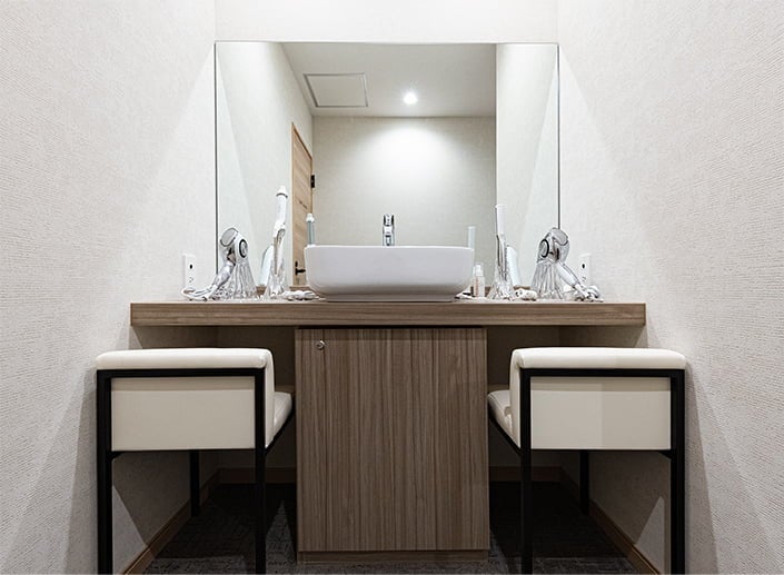 個室とは別に女性のお客様専用のパウダールームもご用意しております。チェックアウト後にゆっくりご利用いただくことも可能です。