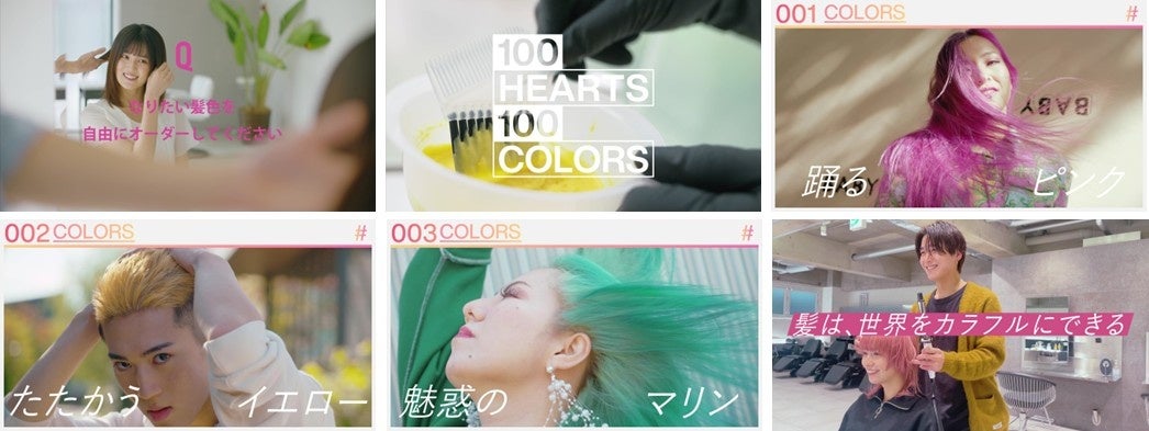 スペシャルムービーでは、100名の理美容業界の皆様とそれぞれの個性を引き出したヘアカラー100色を生み出し、紹介しています。各カラーの名称はお客様に考案していただき、世界で1つだけのカラー見本も制作しました。100年にわたりヘアカラー研究を行ってきたホーユーの知見を込めた、カラーバリエーション。100色の様々な個性光るヘアカラーで自分らしさの表現を後押しし、みるだけで心躍るハートフルなムービーとなっております。是非ご覧ください。