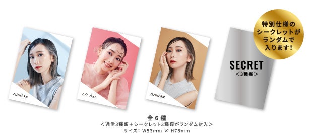 「シークレットライナー シアーベージュ」と「グリッタースティック ピンクベージュ」の購入者特典として、浅見めいオリジナルステッカーが商品に封入されます。ステッカーデザインは通常3種、特別仕様のシークレットデザイン3種の計6種の中から商品1点に対して1枚がランダムで封入されます。