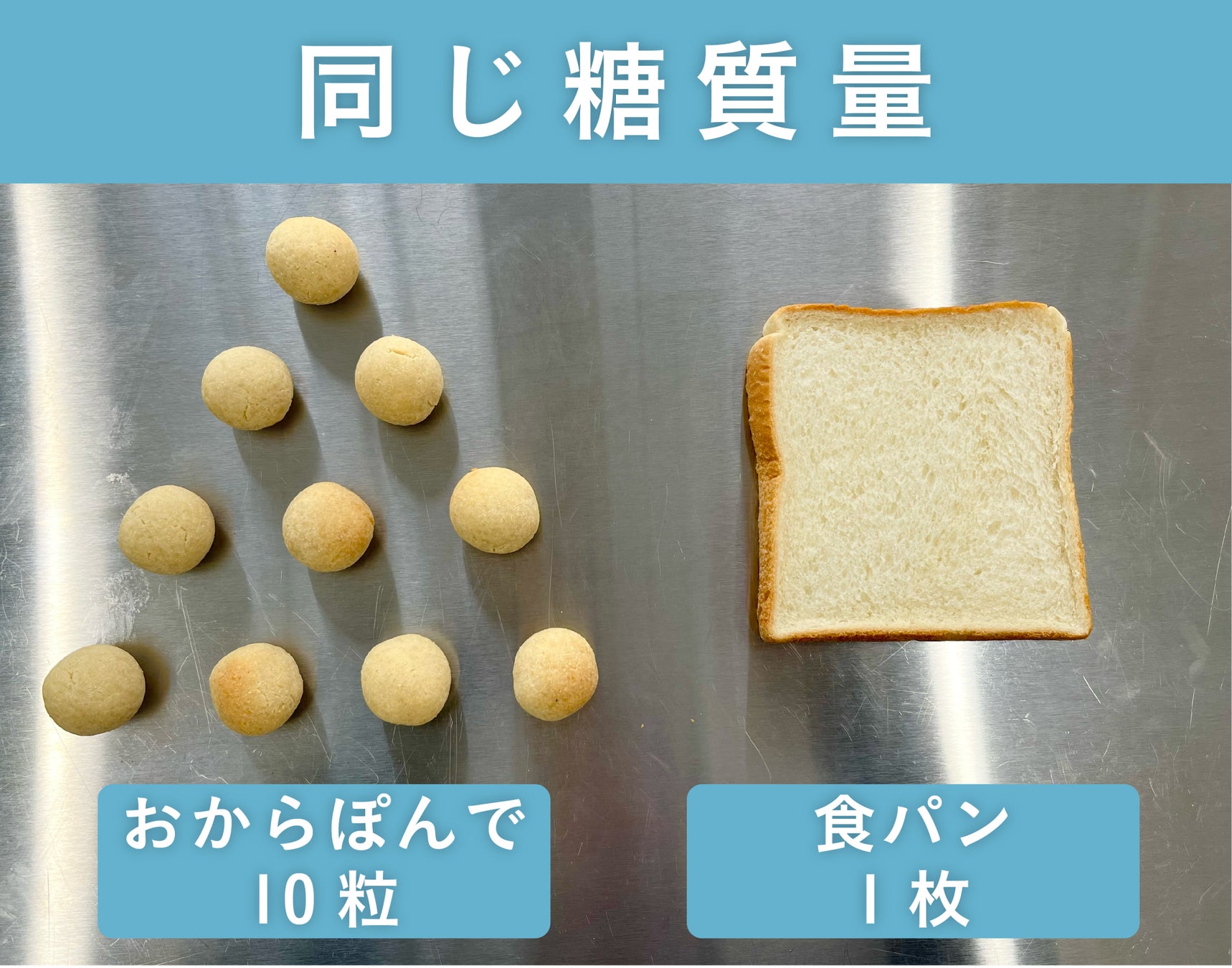 おからぽんでの糖質量は1食あたり「14.7g」。これは同じ重さの食パンと比較すると、なんと約60%オフになります。また、小麦不使用なのでグルテンフリー。グルテンが体に合わない方にもおすすめです。