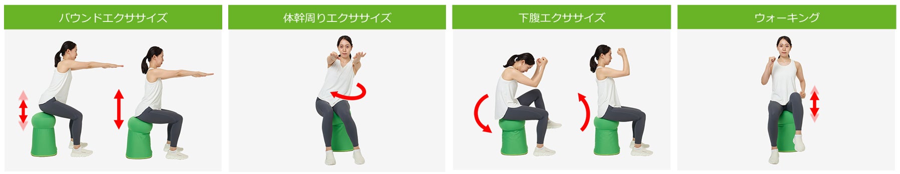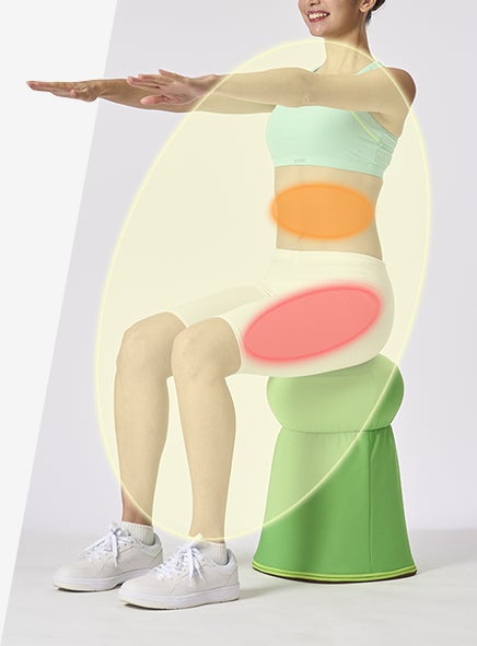 バウンズシェイプは、座面でポンポン弾むことで2つの筋トレ運動と有酸素運動が同時にできます。』