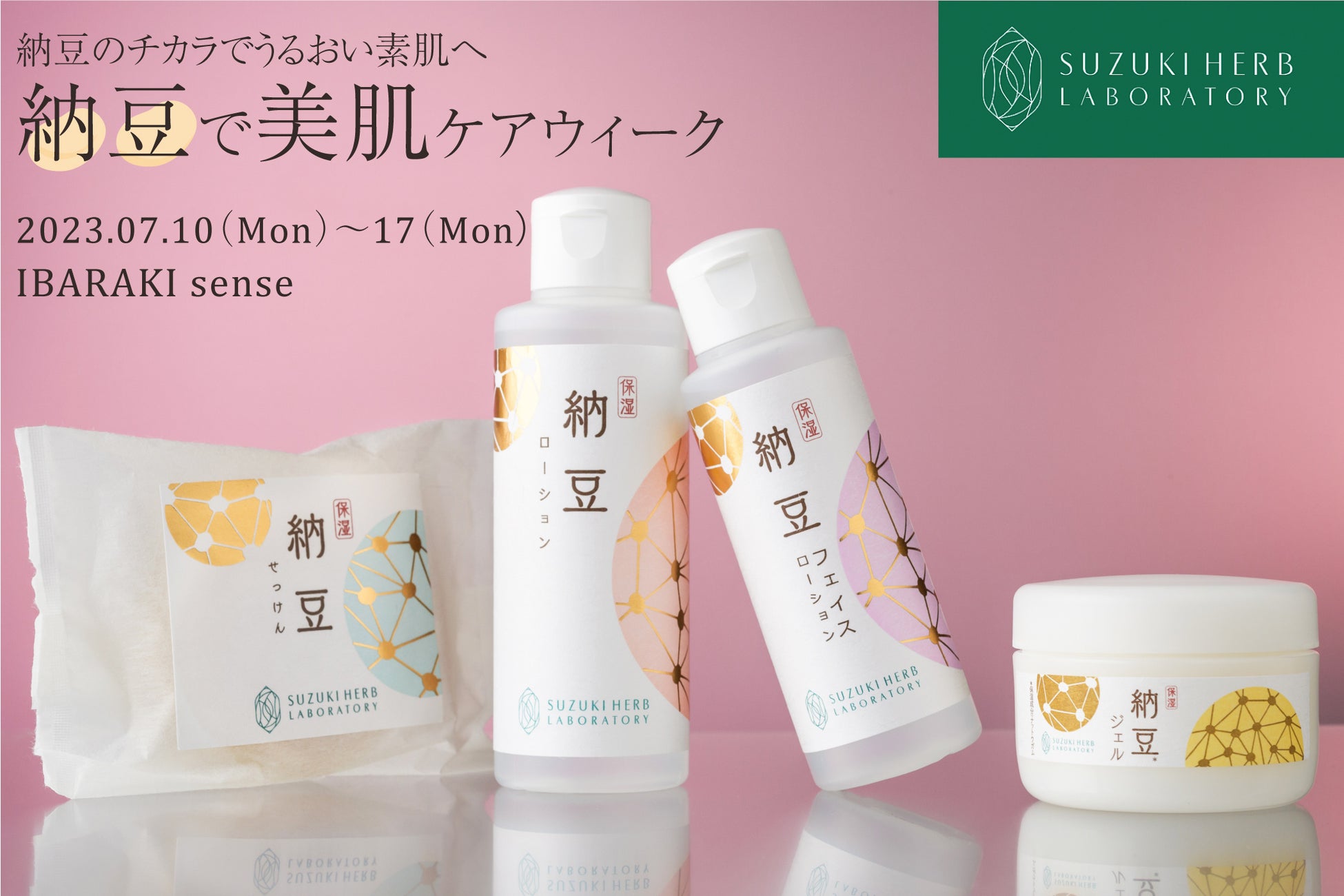 納豆由来のスキンケアを販売している鈴木ハーブ研究所(本社:茨城県東海村/代表取締役社長:鈴木さちよ https://s-herb.com)では、期間中「納豆のチカラでうるおい素肌へ 納豆で美肌ケアウィーク」を以下の内容で開催いたします。ぜひお立ち寄りください。