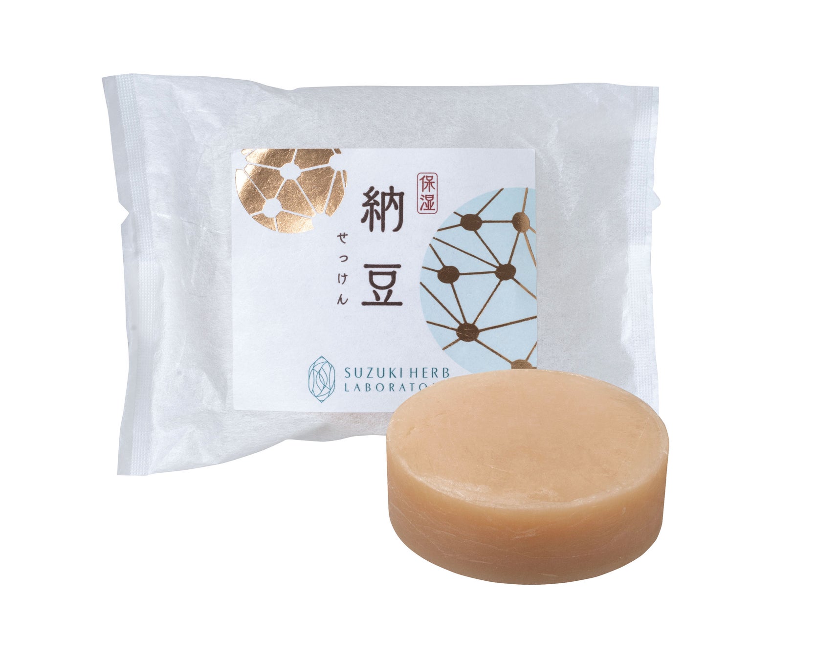 納豆ローションにも含まれる「ポリグルタミン酸」、植物性コラーゲンの「ナットウガム」など、美容液にも十分使用できるハーブエキスをそのまま練り込んだ贅沢なせっけん。キメ細かく濃密でもっちりとした泡で、毛穴の汚れまできれいに取り除きながら美肌成分を肌にいきわたらせます。