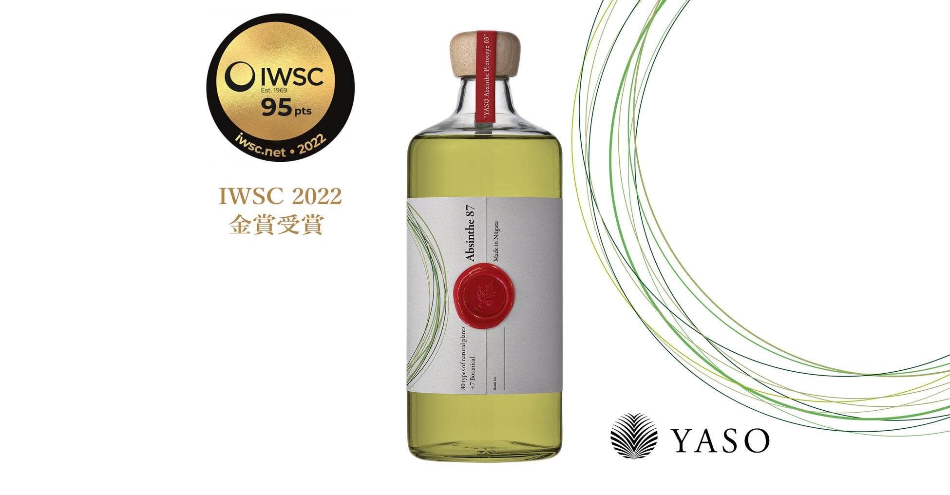 また、ニガヨモギを主体とした「YASO Absinthe Prototype 03(現:THE HERBALIST YASO Absinthe Prototype 03」が世界で最も権威と歴史のある酒類品評会であり、世界三大酒類コンテストの1つである「IWSC 2022」において、国内初となる金賞を受賞しております。本商品以外にもSPIRIT部門において4商品が銅賞を受賞しました。