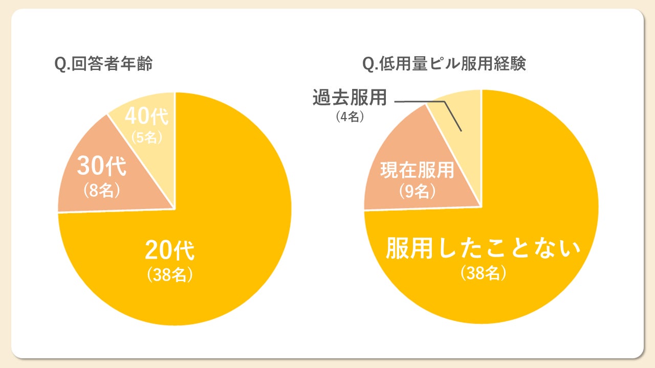 女性スタッフの低用量ピル服用経験では、「服用したことがない(38名)」が約75%を占め、服用経験のない方が多い結果となりました。