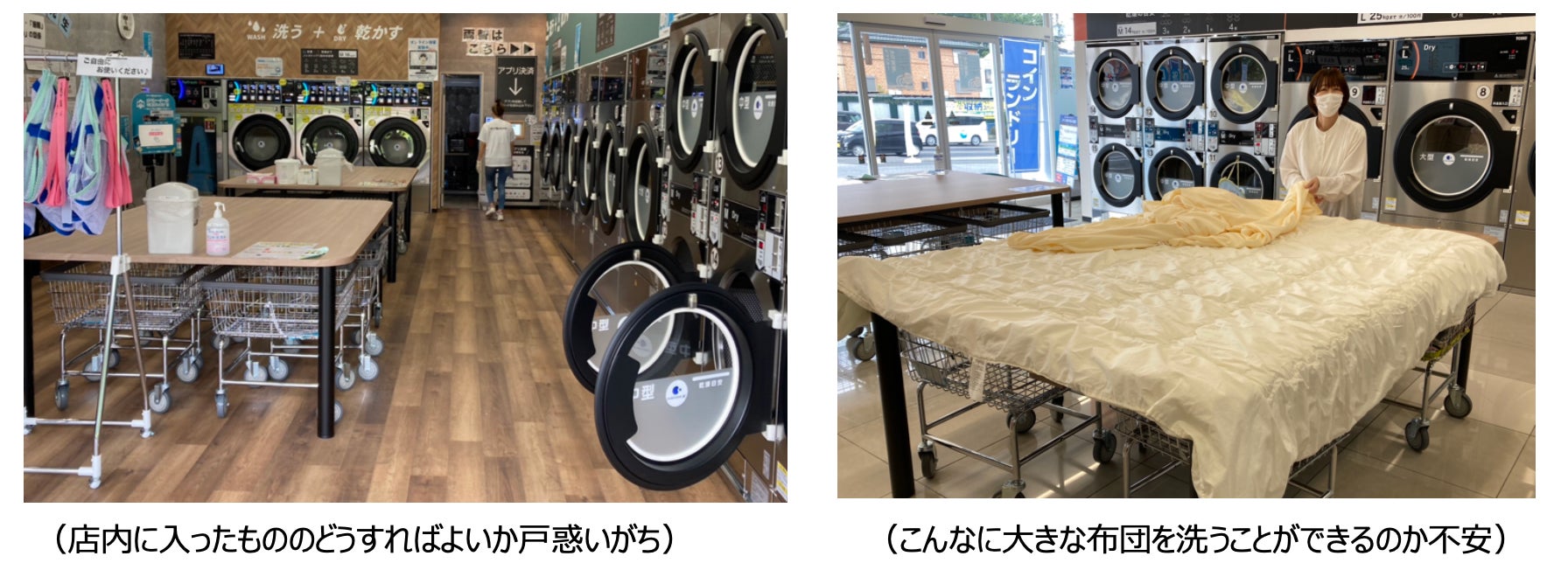 コインランドリーを初めて使う方や、布団を洗うのが初めての方にとって、「コインランドリーってどうやって使えばいいの・・」「どの機械・コースを選べばいいの・・・」「布団を正しく洗うにはどうすれば良いの・・・」など数々のハードルがあり、布団を洗ってみたいけど、気軽に利用できない、ということがお客様の悩みとなっていました。
