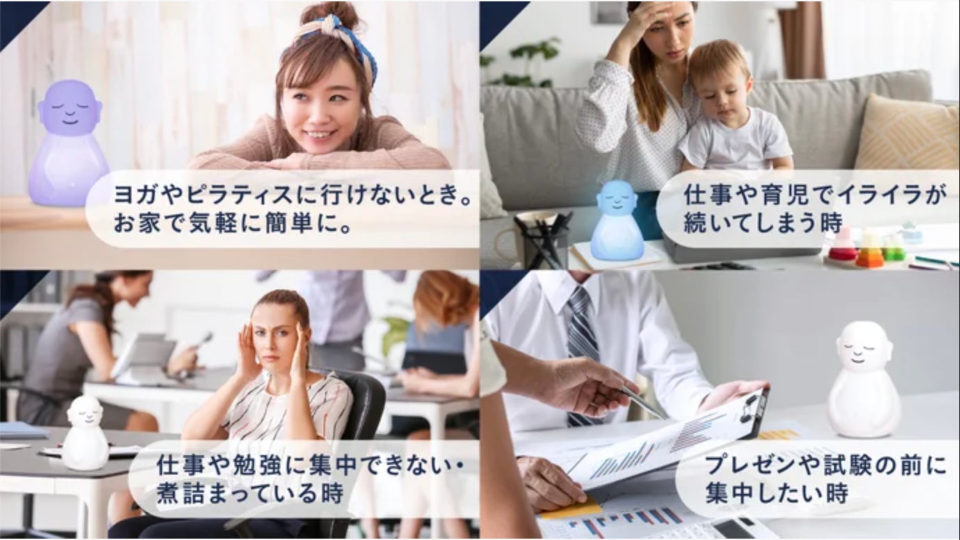 “Breathing Buddha”は、めんどくさがりでも、初心者でも、お子様でもご高齢の方でも、誰でも簡単にマインドフルネスを実践できるようにサポートする、ストレス解消のための新発想のアイテムです。