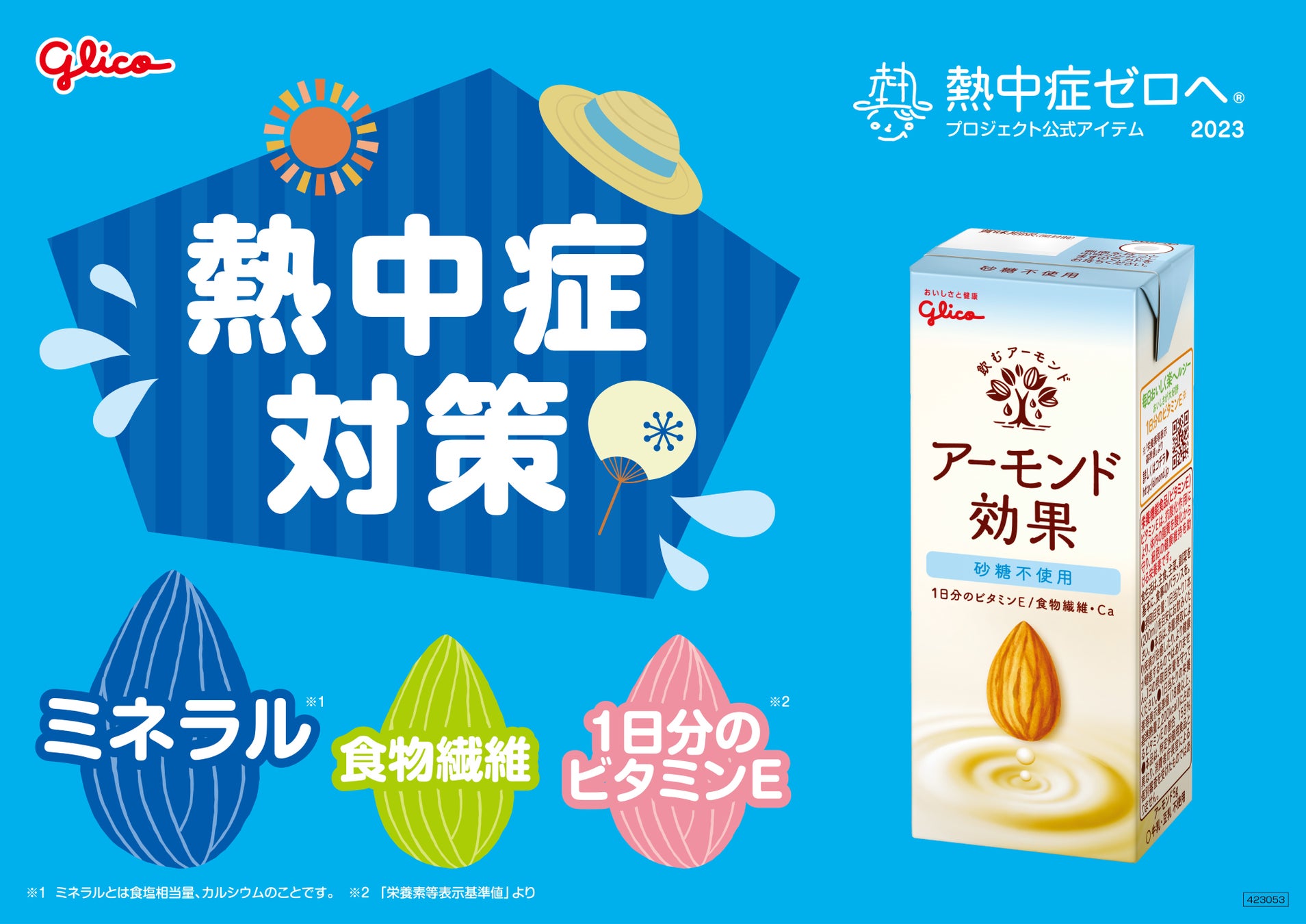 「熱中症ゼロへ」プロジェクトでは、「みんなの力で熱中症をゼロにしよう」を掲げ、熱中症にかかる方を減らし、亡くなる方をゼロにすることを目指して 2013 年から活動を実施しています。当社は今年から同プロジェクトに参画しました。「アーモンド効果」に同プロジェクトのロゴシールを掲示することなどにより、熱中症の予防を呼びかけます。