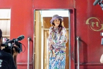 映画コメンテーターで「アスタリフト」の愛用者でもあるというLiLiCoさんが撮影現場に潜入!臨場感あふれる撮影現場をレポートした動画をWEBで公開します。「列車の旅」に合わせリゾートファッションで登場したLiLiCoさん。スタジオ内のモニターで宮﨑さんと岡田さんの演技を静かに見守っていましたが、じっとしていられず、ついに列車客室内への突撃取材を敢行!LiLiCoさんの訪問に笑顔でリアクションをする宮﨑さんと岡田さんの表情にもご注目ください。
