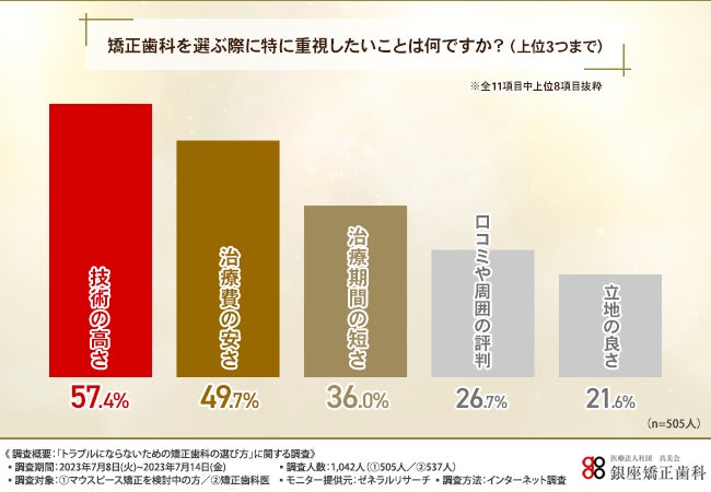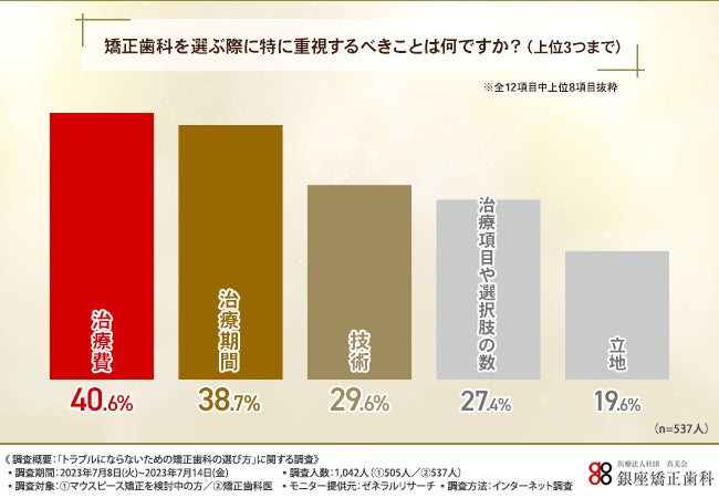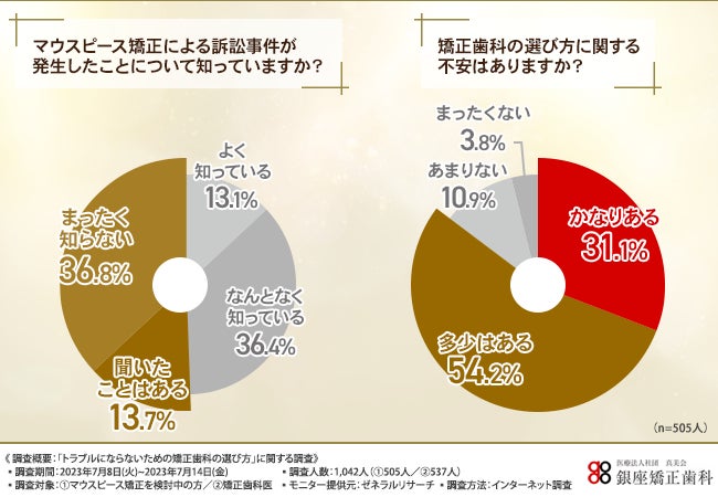 そこで今回、医療法人社団 銀座矯正歯科(https://www.ginzakyousei.com)は、①マウスピース矯正を検討中の方/②矯正歯科医を対象に、「トラブルにならないための矯正歯科の選び方」に関する調査を実施しました。