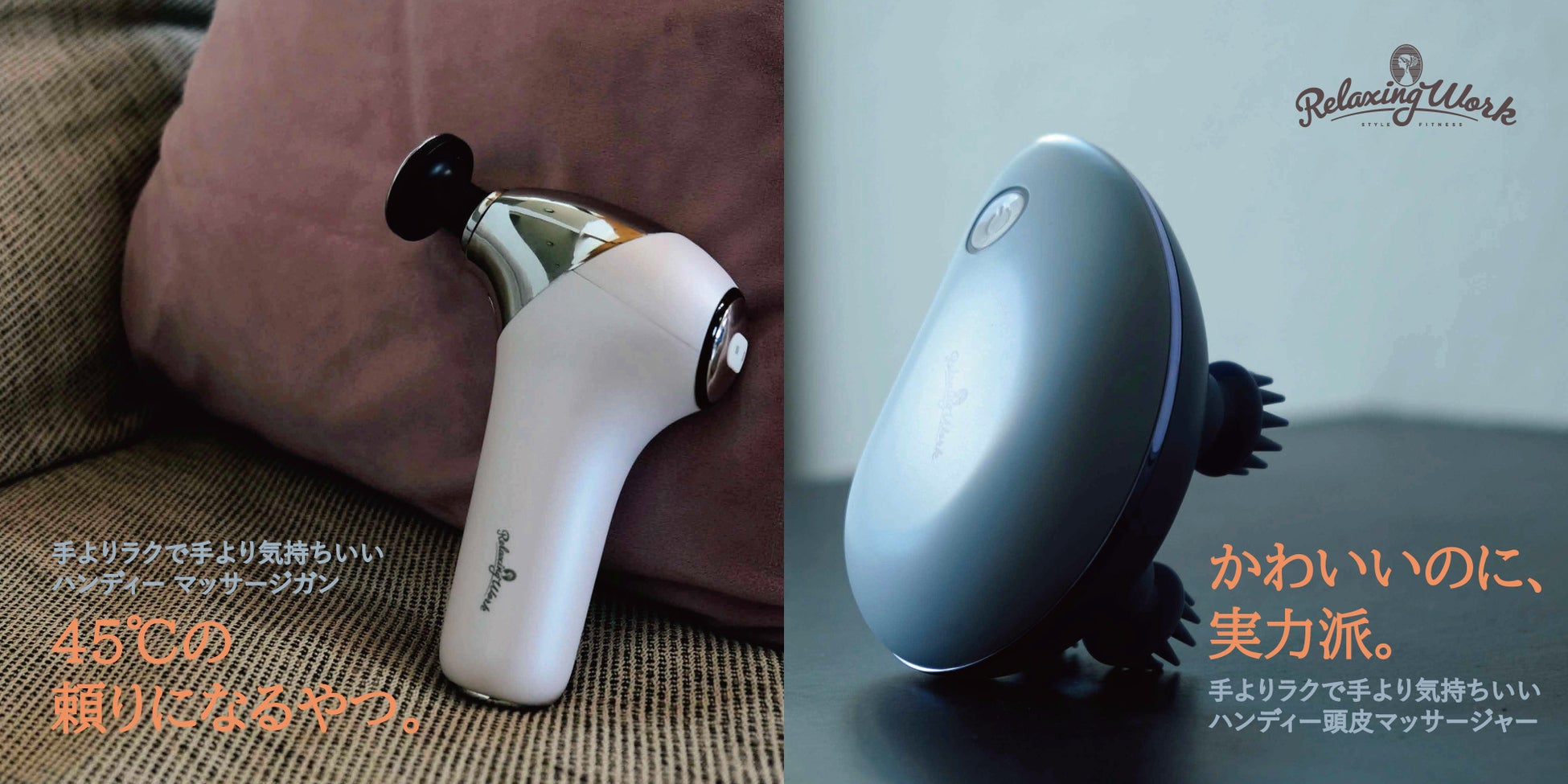 シリーズ累計販売数70万個を突破したセルフケアブランド、RelaxingWork(リラクシングワーク)から発売となる今回の新商品では、ブランド初となる電動マッサージャー2種類が新登場。アフターコロナの疲れに時短でしっかり効く、忙しい時こそご自愛セルフケアする時間の大切さを提案。