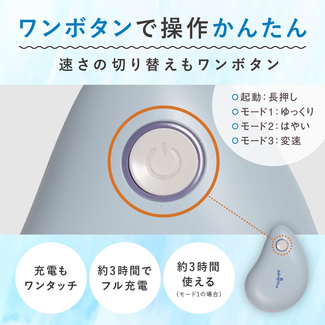 防水性能:IPX7防水、タイマー:約10分で自動OFF、回転モード:1(遅)、2(速) |