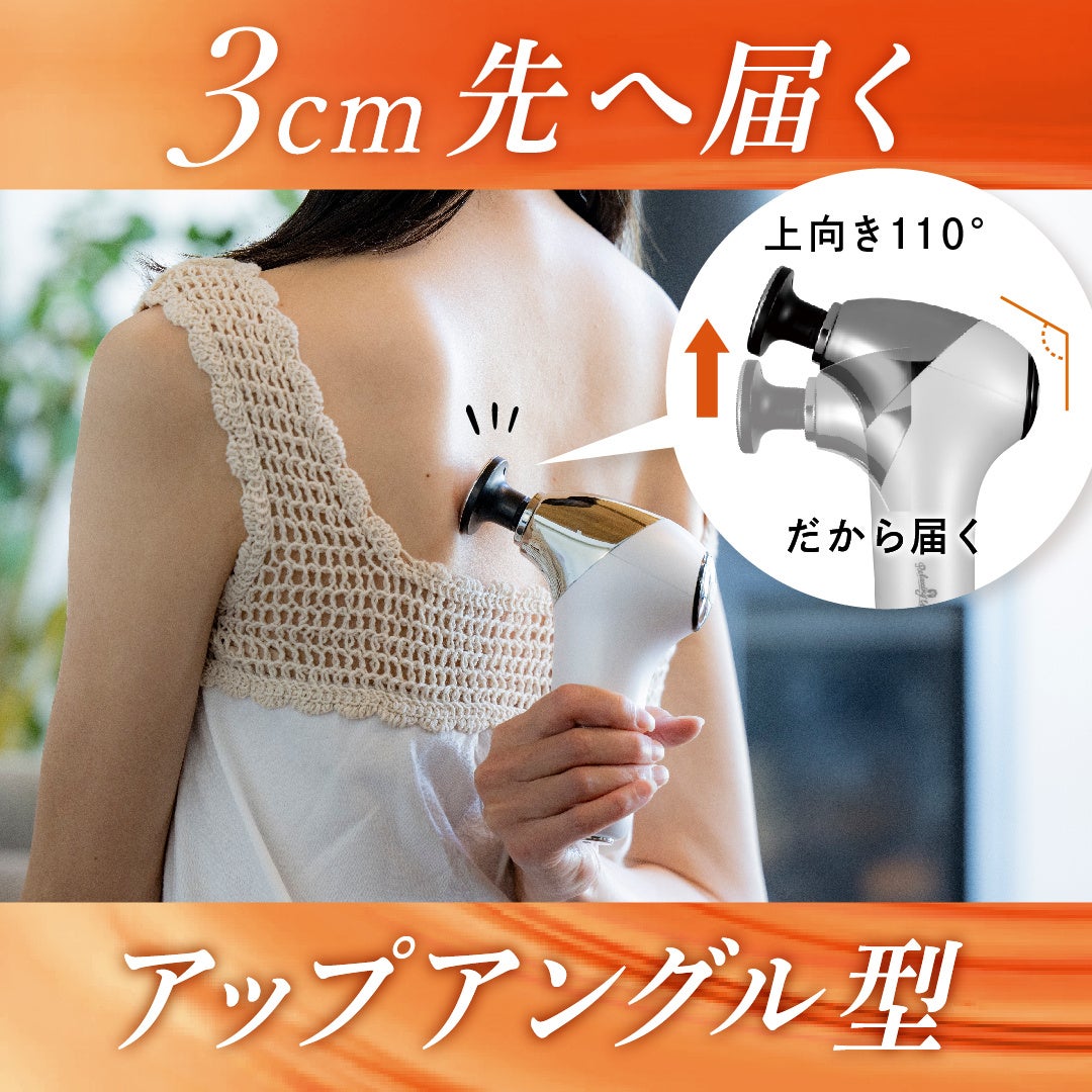 アップアングル型でさらに3cm先の肩甲骨にもアプローチ可能。