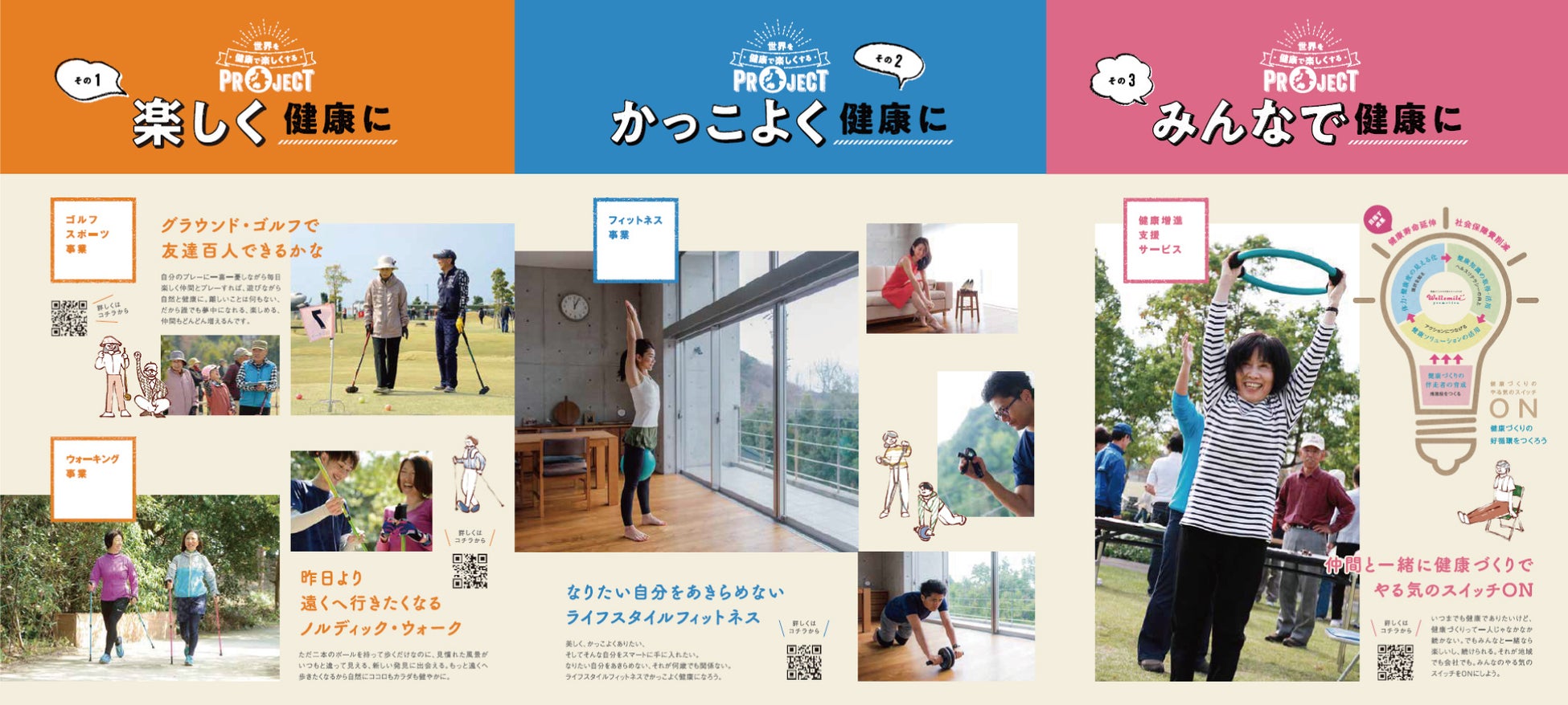 「楽しく」「かっこよく」「みんなで」健康にをモットーに、健康に携わる商品・サービスを展開しています。
