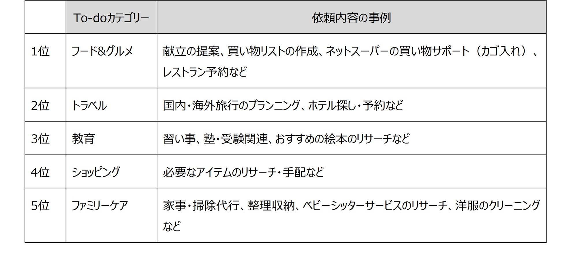 これまで、子育て中のご家族に加え、単身者やシニア層を含め幅広い層の方からご利用いただいています。また利用者の声からは、「忙しい中でのタスクを片付けてもらえること」に加え「自分がやるよりも選択肢が広がったり、知らなかったことを教えてもらえること」が満足度に寄与していることがわかっています。国内でのサービス提供開始から1年を迎える中、2023年9月5日(火)より、これまでと同様のサービス内容を、よりお求めやすい価格でご提供を開始し、幅広いお客様のくらしに貢献できるよう目指します。