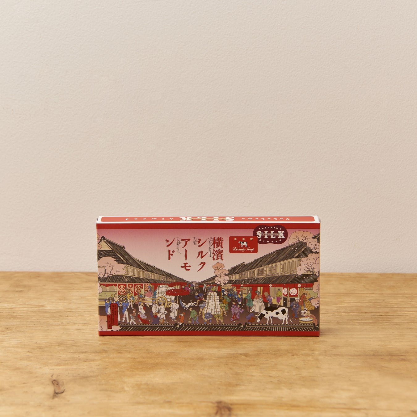 開港から昭和の初頭まで輸出品の多くが生糸だったという歴史を持つ横浜は「絹の都」とも呼ばれていたそう。その歴史を次世代へと残すために生まれたのが「横濱シルクアーモンド」。「赤箱 AWA-YA in YOKOHAMA」を記念して、特別版パッケージで販売します。カリッと香ばしく焼き上げたアーモンドを、シルクパウダーとミルクパウダーでカバーリング。1粒また1粒…、ほんのり甘く、あとを引くおいしさです。