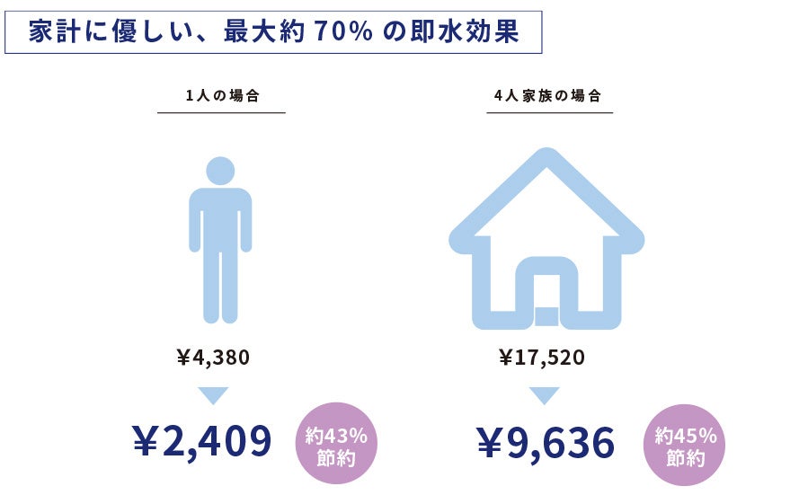 *最大70%節水 : 約40%~70%節水可(当社調べ)地域・使用状況等により節約金額が変わる場合があります。