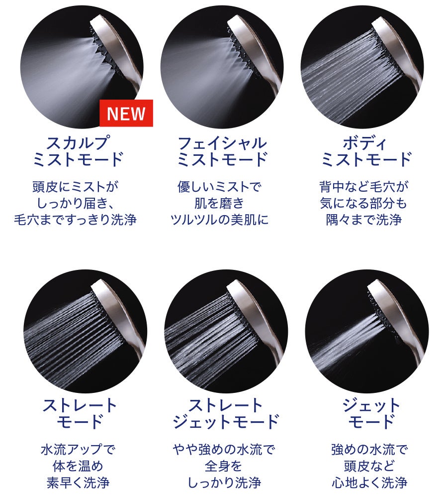 ■製品特徴②選べる6種のシャワーモード。新機能「スカルプミストモード」搭載