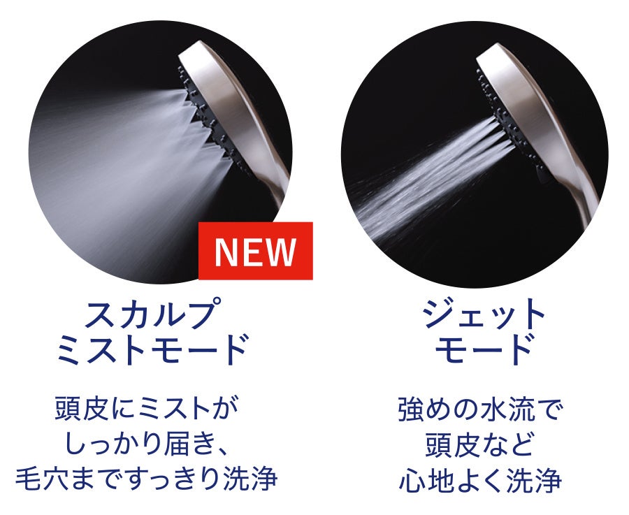 人気の秘訣であるナノバブルが発生するミストシャワーモードをさらにパワーアップし頭皮の毛穴までしっかり届く「スカルプミストモード」を新搭載しました。