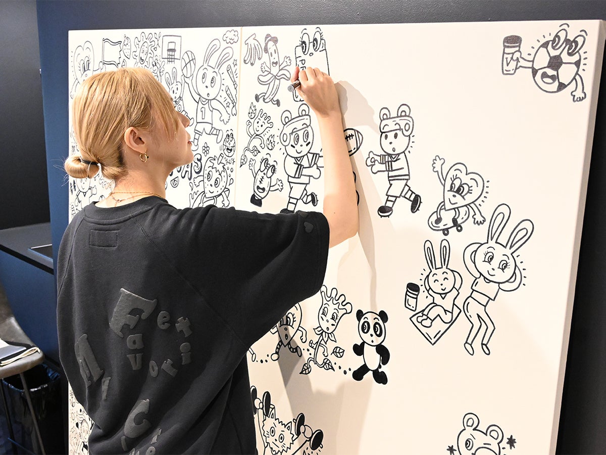これから入社される求職者はもちろん、弊社オフィスにご来社いただく顧客の皆様にもVITASが持つ思い、ビジョンを発信するべく、国内外で活躍されるアーティスト「Chocomoo」さんにアート制作を依頼いたしました。