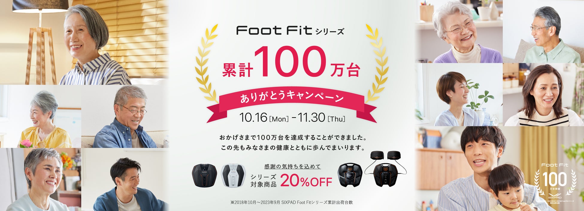 キャンペーン期間中、「SIXPAD Foot Fit Lite」、「SIXPAD Foot Fit 2」、「SIXPAD Foot Fit Plus 2」を通常価格より20%オフでお求めいただけます※。