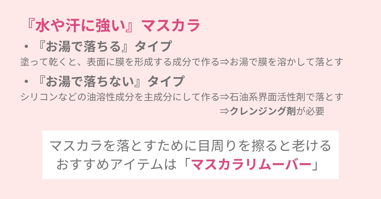 ●『水や汗に強い』マスカラがなかなか落ちない。ゴシゴシ擦ると目周りが老けるかも