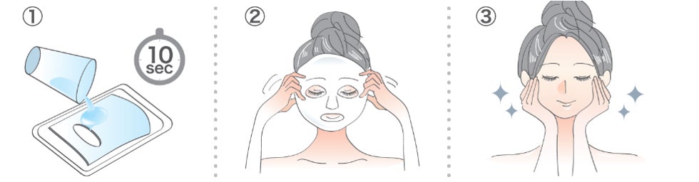 ③ 10〜15分後にマスクをはがし、肌に残った液を手のひらでなじませます。
