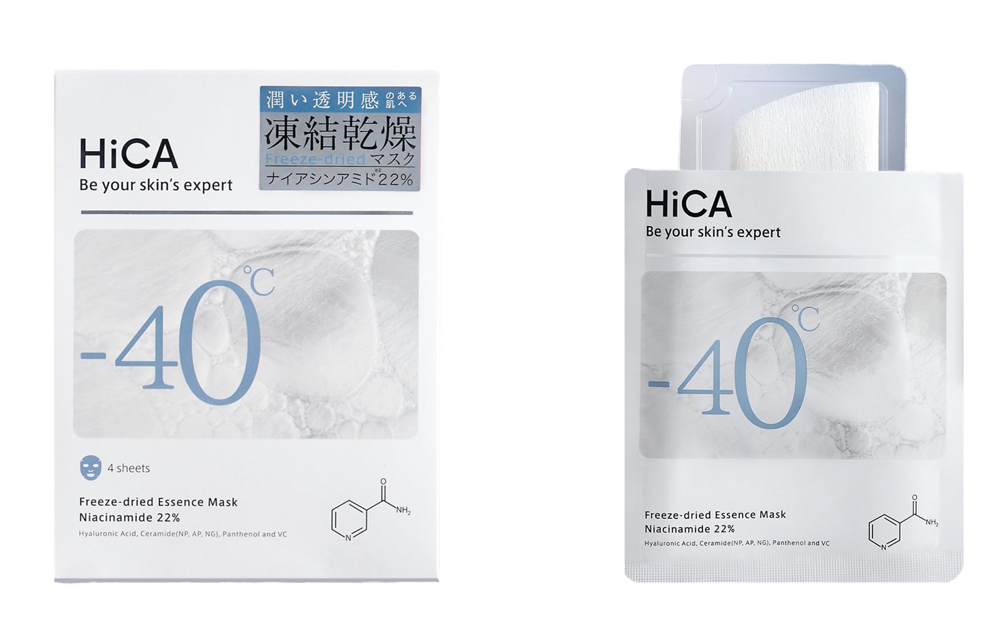 「フリーズドライエッセンスマスク ナイアシンアミド22%」は、美容液をたっぷり含んだマスクを-40℃で凍結後に真空乾燥させることで、美容液成分を安定化してマスクにギュッと閉じ込めます。