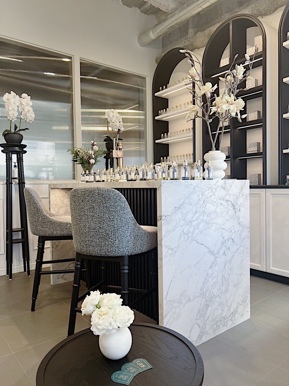 調香師を務める和崎純也氏が世界各地から厳選した 60 種類以上の天然香料を自由に組み合わせて、世界に一つだけのフレグランスが作れる東京、原宿にある完全個室のパフューマリーサロン。