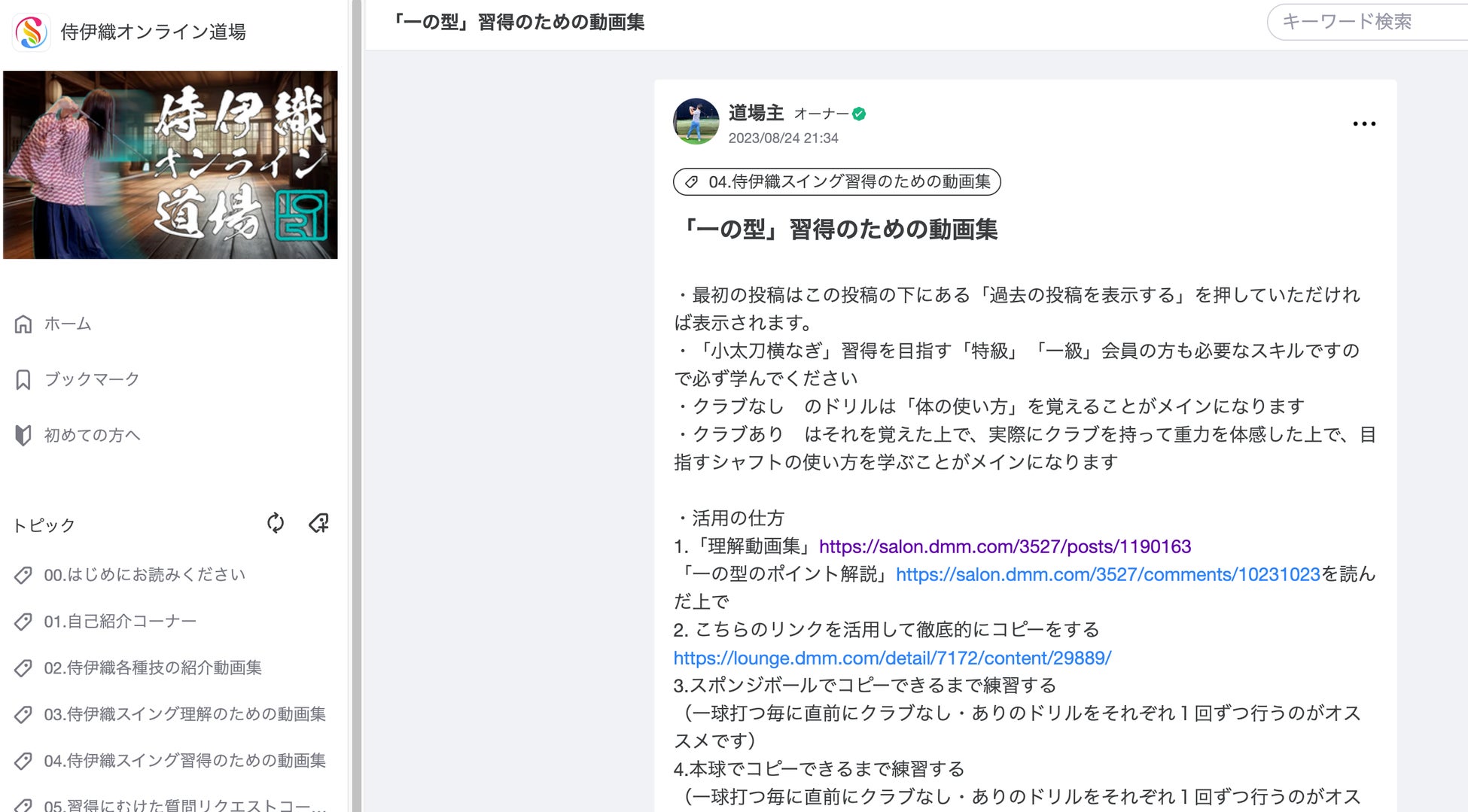 侍伊織オンライン道場 https://lounge.dmm.com/detail/6690/index/