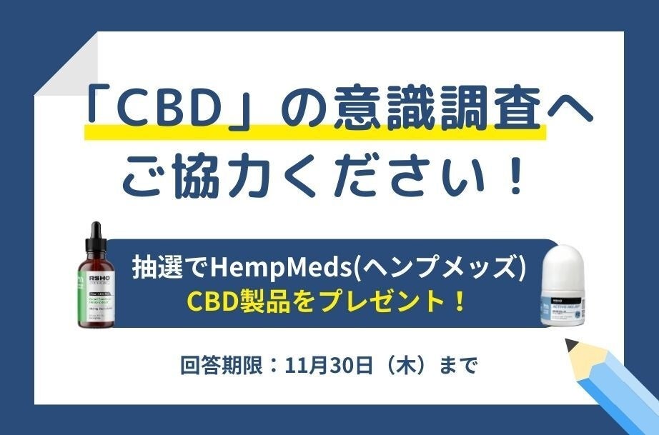 アンケートにご回答いただいた方の中から抽選で合計10名様にHempMedsのCBD製品をプレゼント致します。アンケートで2つの製品からご希望をお伺いします。