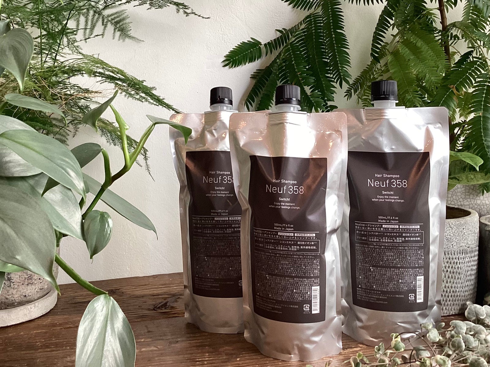 美容成分がたっぷりと入った濃厚なシャンプーで、Neuf358ナチュラルバームとの共通成分が髪の毛のまとまりを促して、トリートメント要らずでも乾かした後もしっとりツヤやかなまとまった髪へ。