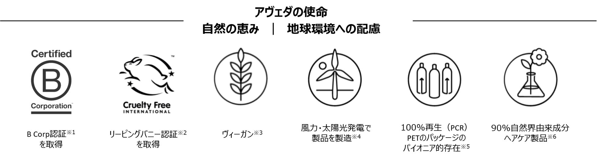 *⁶ 自然界由来成分とはISO16128の自然由来原料の定義に基づいたもので、成分の由来の大半が植物、非石油系ミネラル、または水であることを意味します。また、90%は、アヴェダヘアケア製品のアヴェダが算出したおおよその値です。