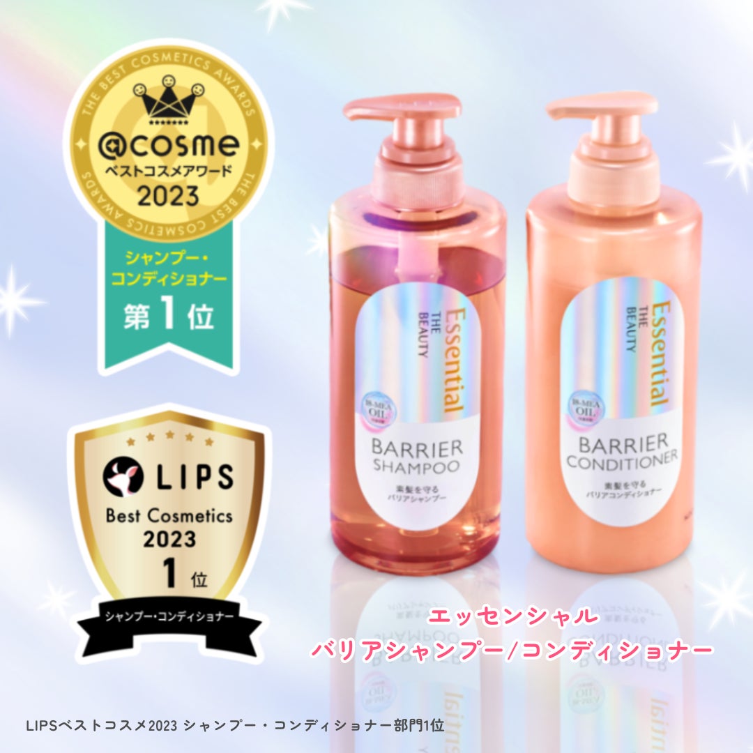 『エッセンシャル ザビューティ バリアシャンプー&コンディショナー』は、髪の美しさを一日守る“浸透美髪バリア処方”という新価値を提案し、2023年4月に新発売いたしました。「バリアシャンプー」は、アミノ酸系洗浄成分*1 を配合し、洗浄力を保ちながらも、とろふわスフレ泡で、髪を守ってやさしく洗える使用感に設計。「バリアコンディショナー」は、傷んだ髪を集中補修・コートしてなめらかに整え、サラサラの仕上がりを実現しました。傷んだ髪もしなやかにまとまる使用感が高く評価されています。