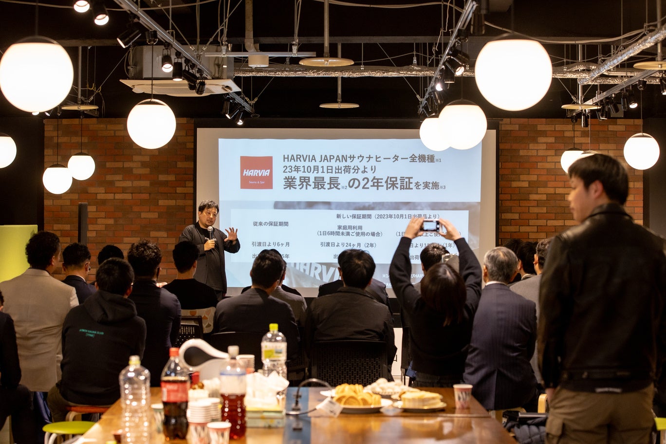 「ハルビア サウナ ディーラー 岡山 」のオープンに先駆けてイベントとして開催されたトークショーにはハルビアグローバルアンバサダーであるととのえ親方とサウナ師匠が揃って登壇しました。3月にハルビアグローバルアンバサダー就任後、世界各国の工場を巡った話や世界のサウナを見てきた話しで場を盛り上げました。また、質疑応答では岡山県内でサウナ導入を検討する事業者やサウナを取り扱うメディアからの質問も飛び交い、岡山でのサウナ展開に期待が膨らむイベントとなりました。