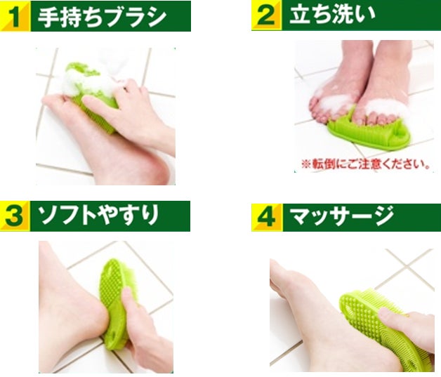 面倒な足洗いを立ったまま簡単に洗いたい!足指の間や爪を根こそぎ洗いたい!マット型ブラシは保管が面倒!かかとのガサガサが気になる!足マッサージでリフレッシュしたい!そんな方々におすすめです。