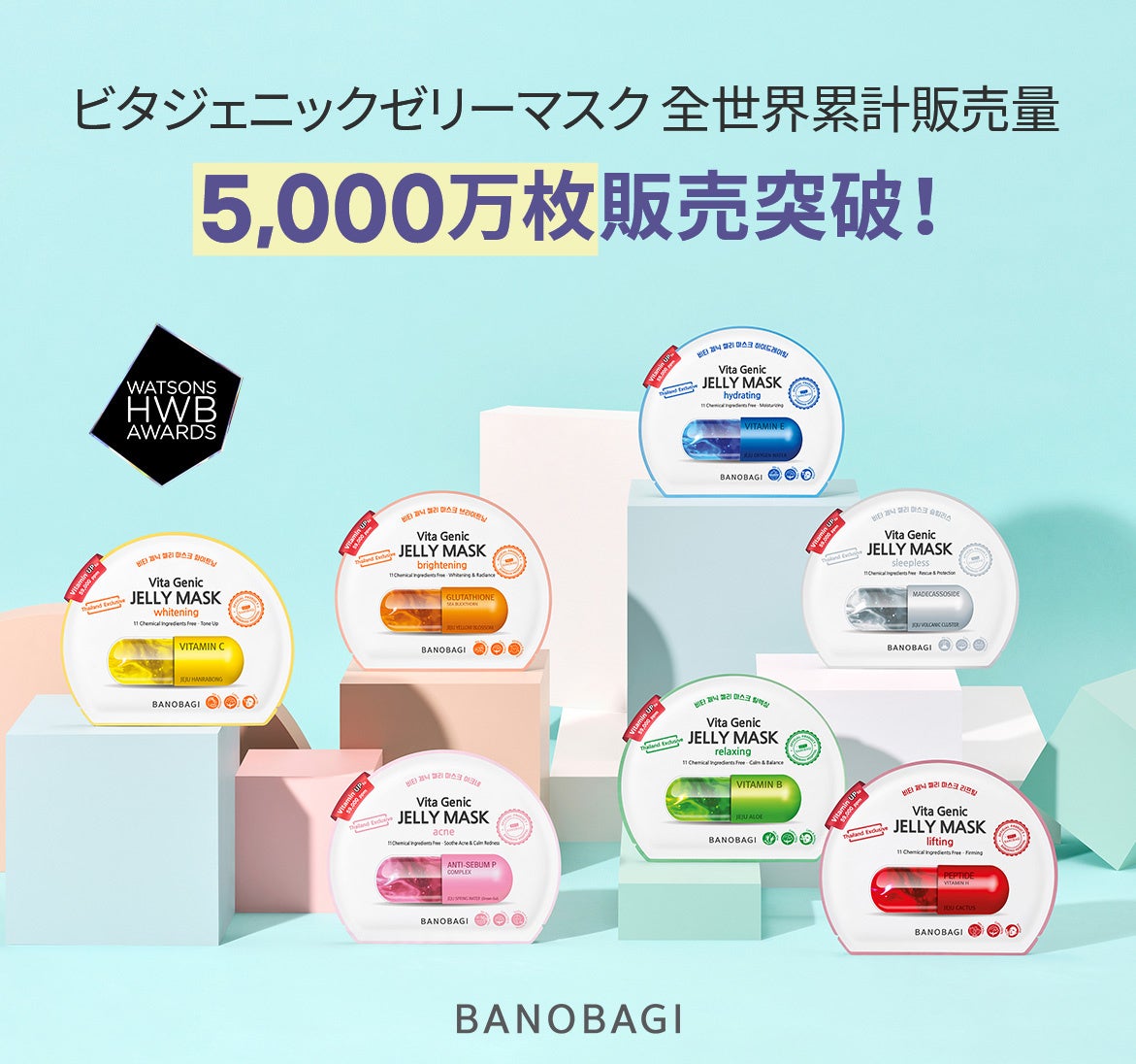 一方、バノバギのグローバルロングセラー「ビタジェニックゼリーマスク」が昨年末、世界累計販売数5,000万枚を記録したそうです。タイ、ベトナム、米国、イギリスなどの様々な国に輸出され、2021年に2,000万枚を突破して以来、毎年1,000万枚を超える好調な販売を続けています。特に、タイでは4年連続でワトソンズアワード(HWB Awards)で1位を受賞し、東南アジア諸国では「国民マスクパック」と呼ばれるほど人気があります。