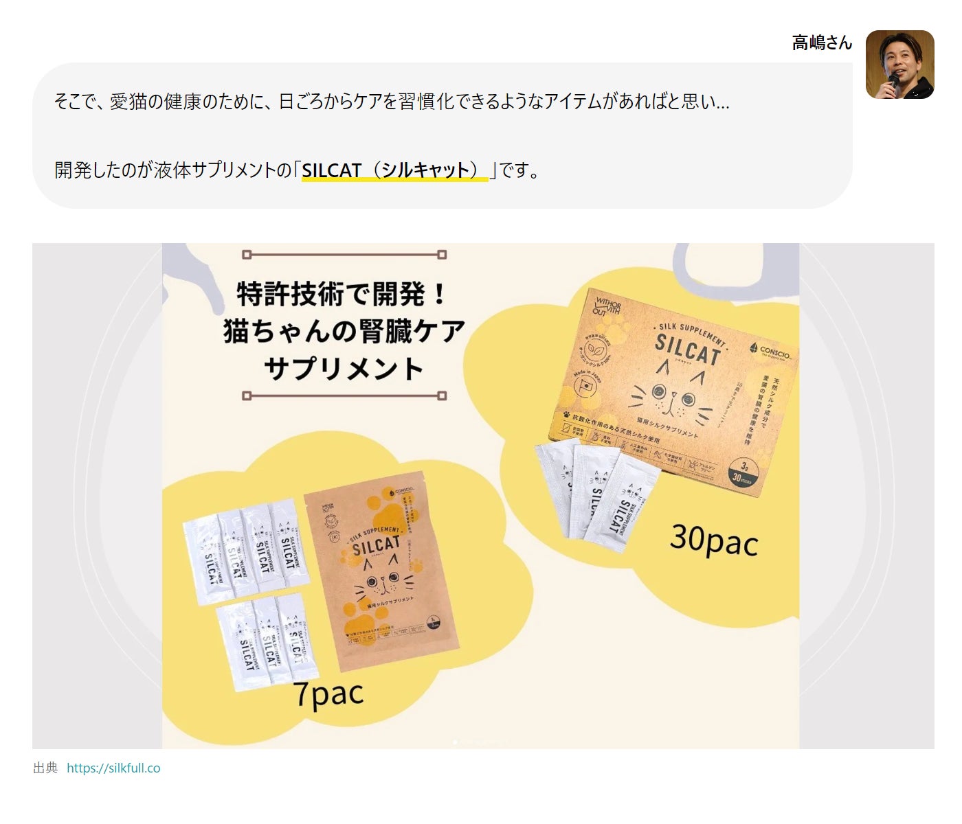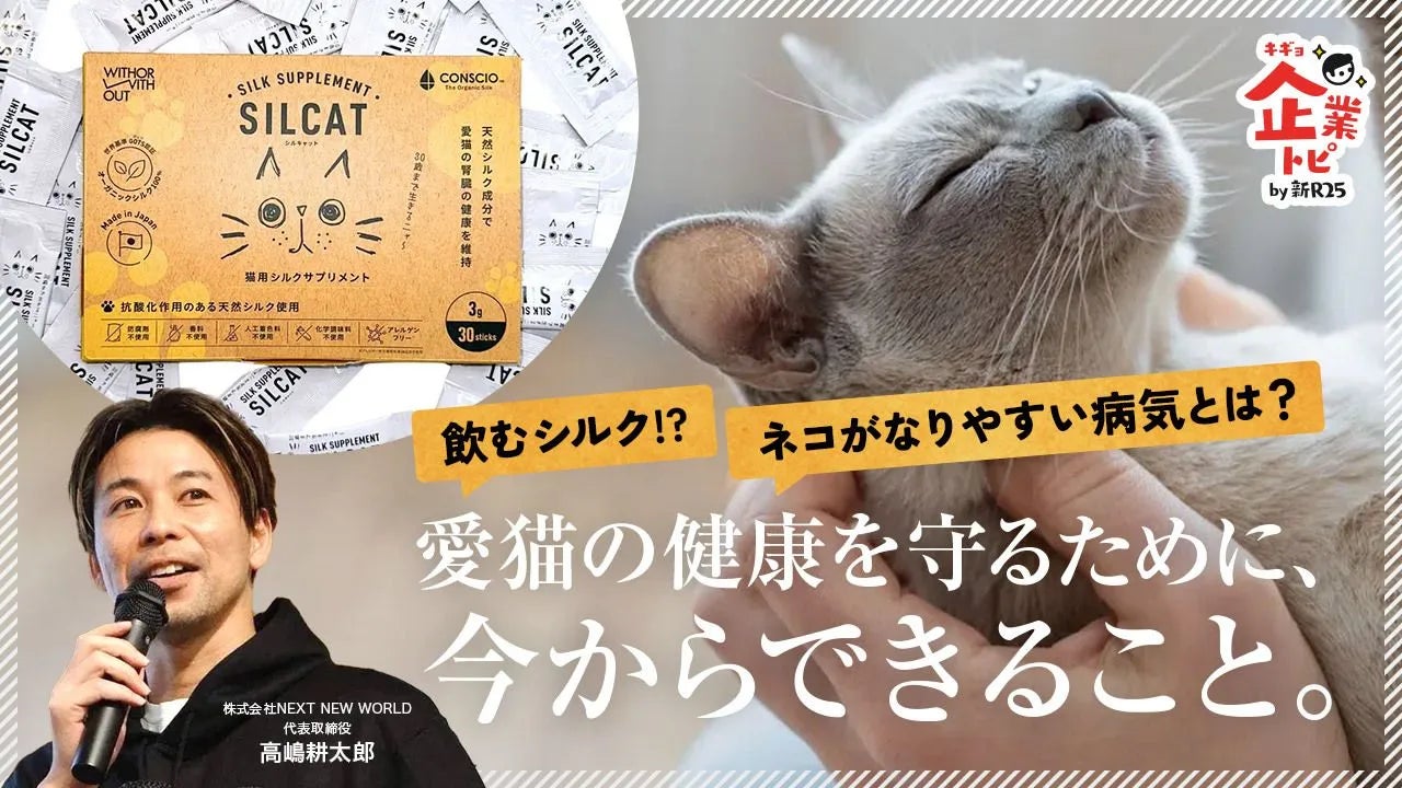 株式会社NEXT NEW WORLD(https://corp.nextnewworld.co/)は23年12月に猫の腎臓ケア・便臭予防を目的としたオーガニックシルクサプリメントを発売。