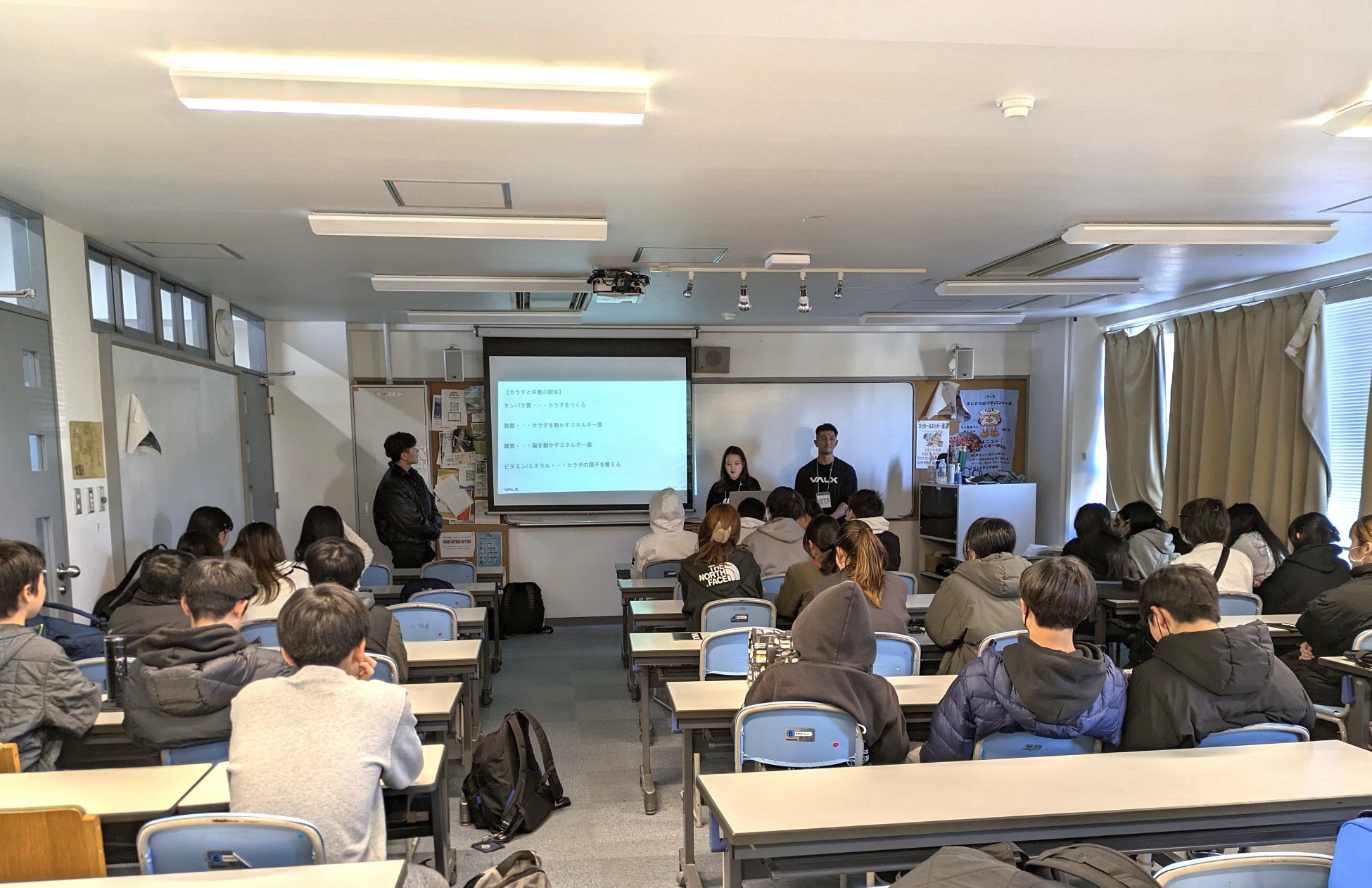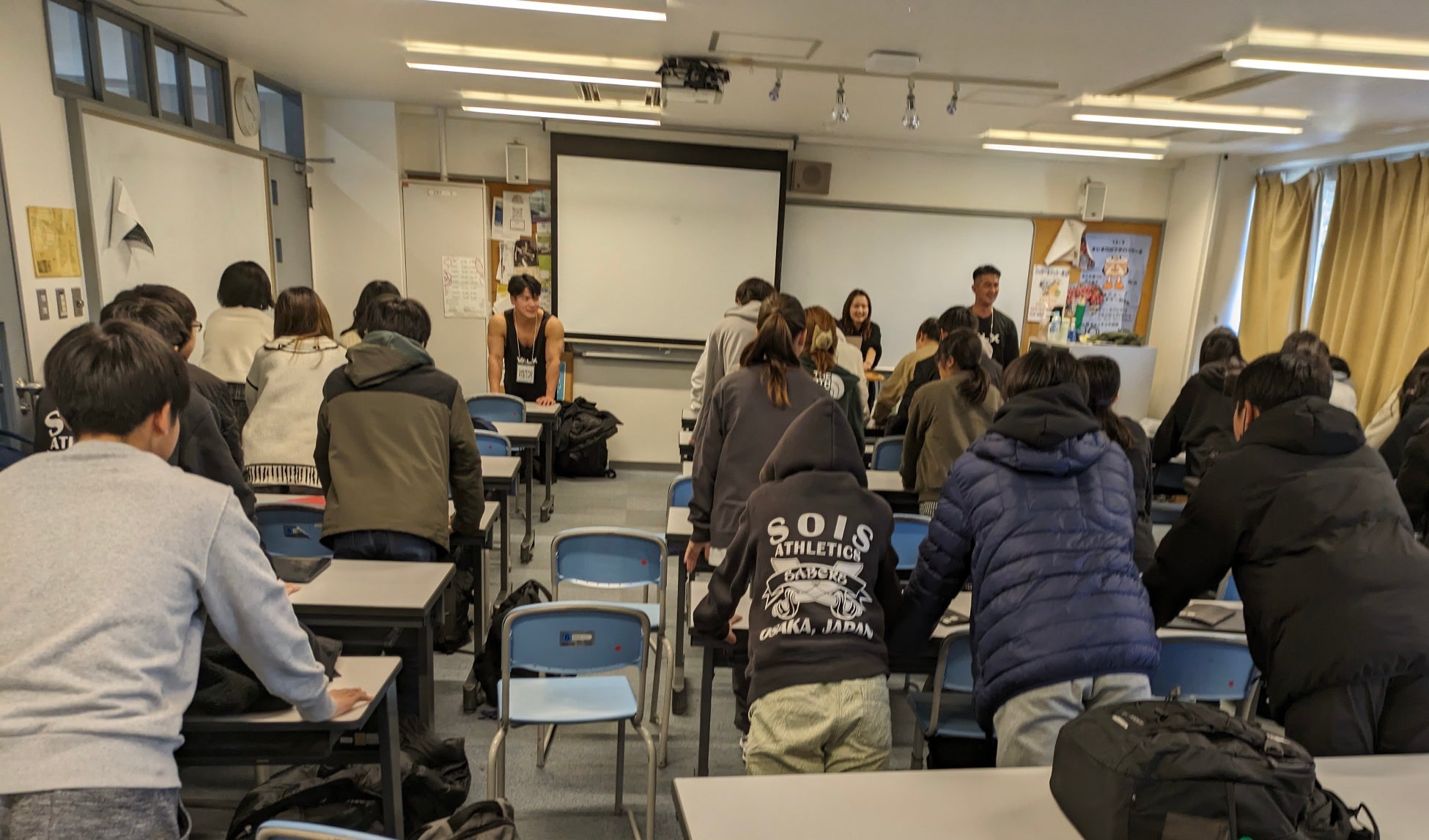 約60名の学生へ、管理栄養士による栄養の摂り方、及び必要性を、VALXに所属するトレーナー達からは、運動が及ぼす身体への影響、自宅で簡単に行えるトレーニングに関する授業を行いました。