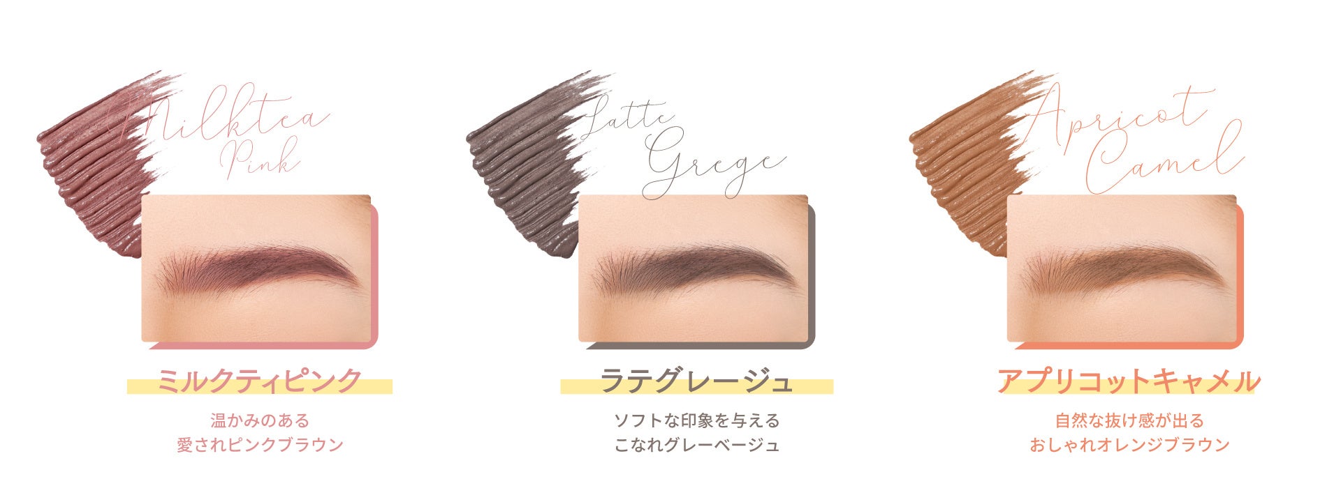 水越さんこだわりの春を感じさせる印象的で温かみのある絶妙カラー。眉の存在感を自然に和らげながらニュアンス感が伝わる色味で、どの色も眉毛になじみやすくデイリーに使いやすいカラー展開です。