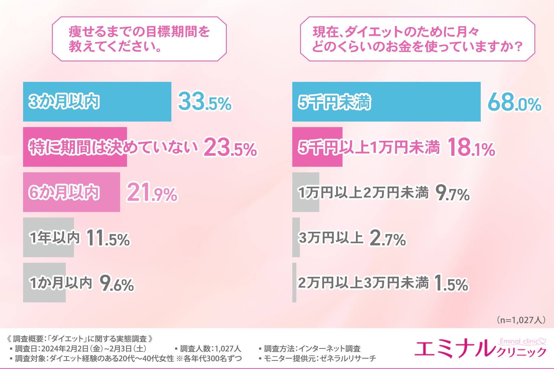 今回、「ダイエット」に関する実態調査を実施した、エミナルクリニックは、医療脱毛をはじめ医療ダイエット(https://eminal-clinic.jp/lp01/medicaldiet/)を提供しています。