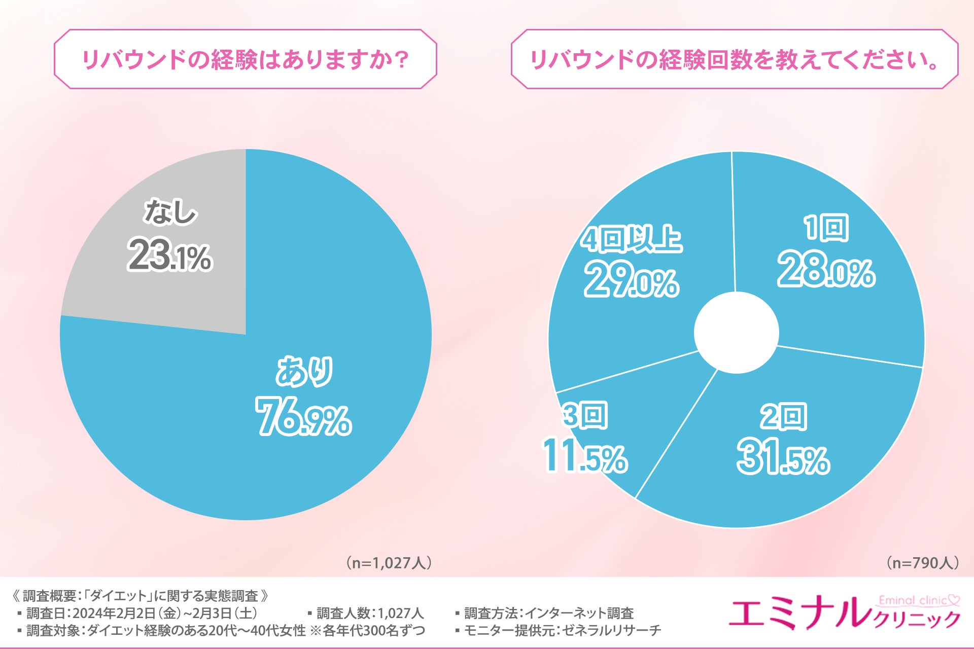 そこで「リバウンドの経験はありますか?(単一回答)」と質問したところ、約8割の方が『あり(76.9%)』と回答しました。