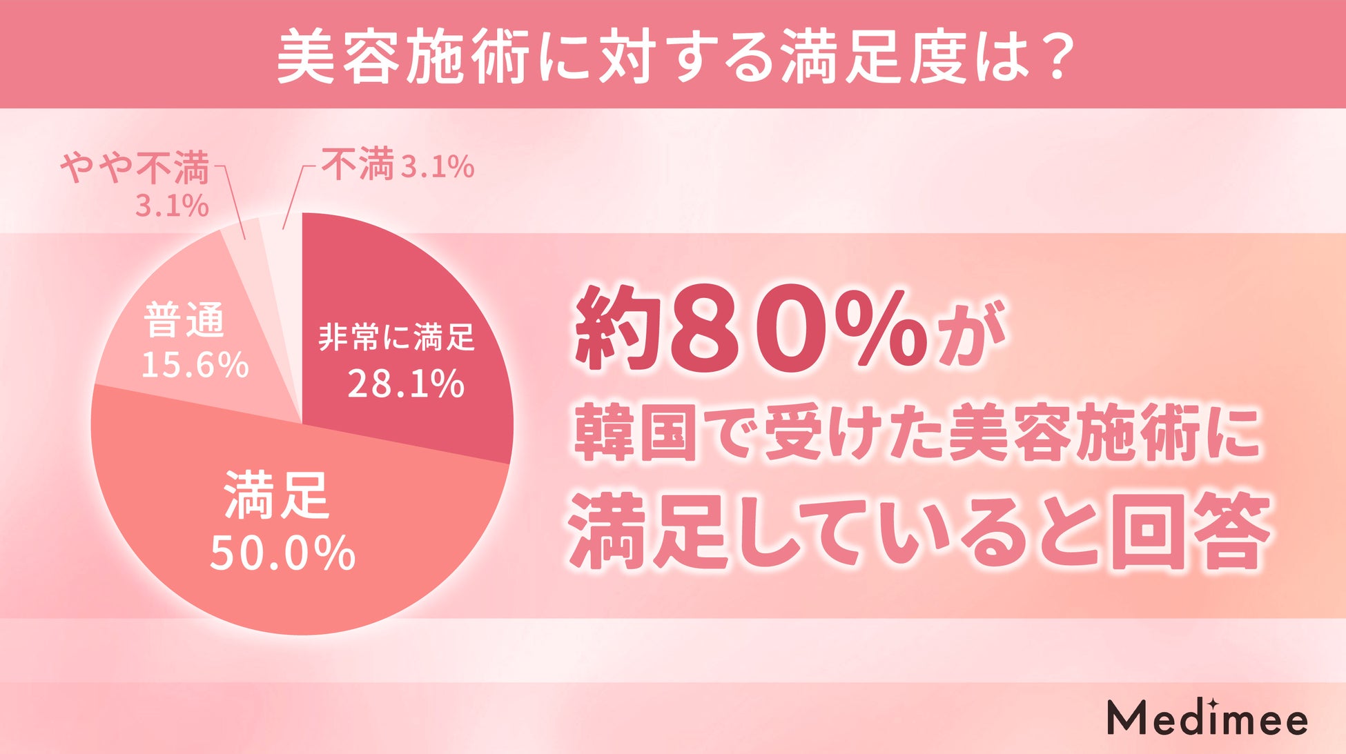 株式会社FoR/FoRINC.(本社:東京都渋谷区、代表取締役社長:高橋知暉)は、「美容クリニックをもっと身近に」をビジョンに掲げるサイト「Medimee」にて、美容医療に関する情報を発信しています。今回は、20〜50代男女の施術経験者を対象に、「韓国の美容医療に対する満足度」に関するアンケート調査を実施しました(Medimee調べ)。以下はその結果です。