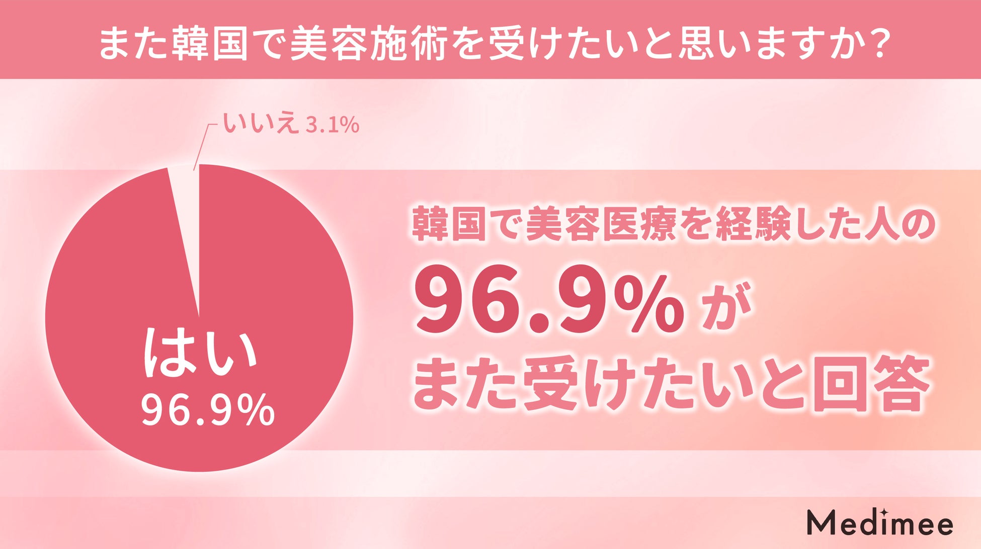 韓国で美容医療を経験した人の96.9%が、また美容施術を受けたいと回答しました。また、「はい」と回答した理由としては、以下のような回答が得られました。