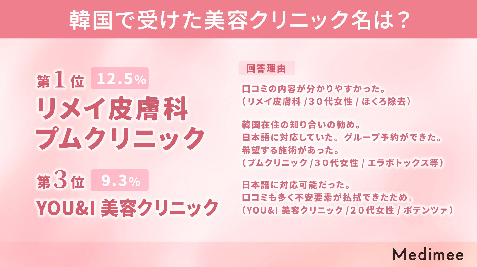 美容医療に関する情報サイト「Medimee」がアンケート調査を実施。韓国で受けた「美容施術」や「美容クリニック」について経験者に聞いてみました!