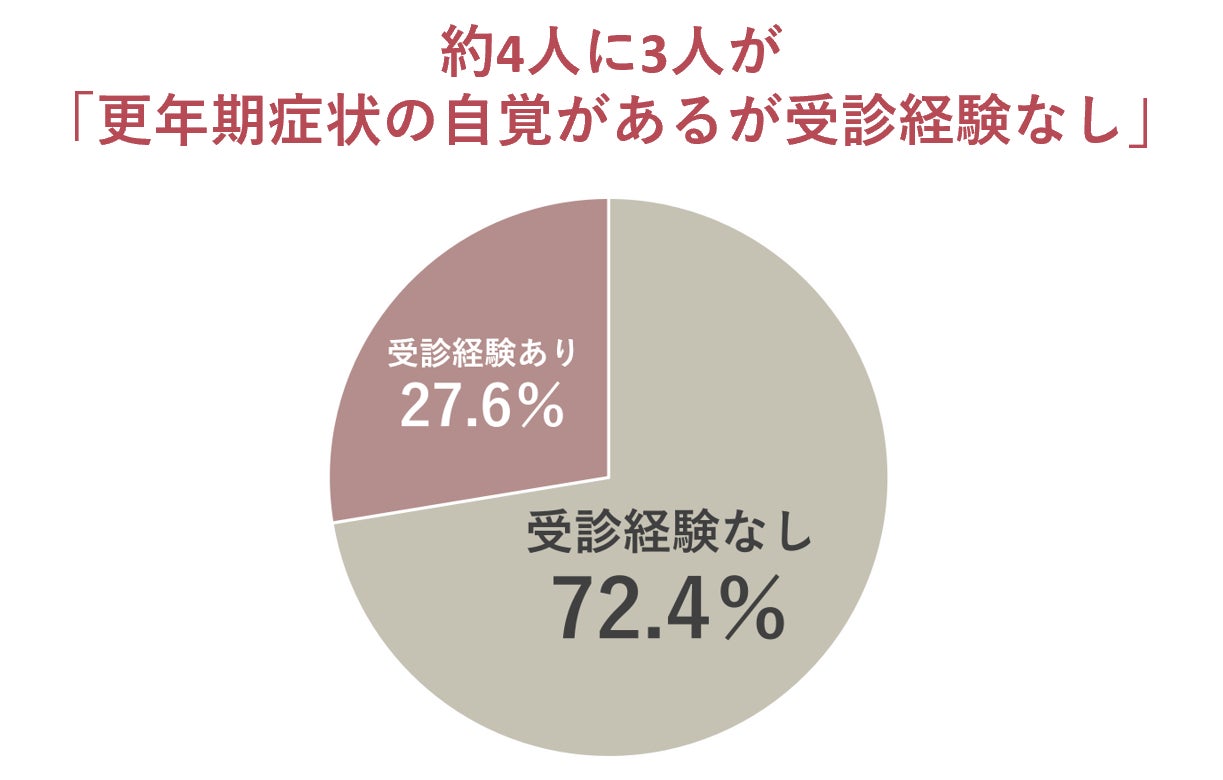 近年、更年期に関する理解が進む一方で、当院が40~50代女性338名に対して行った調査※1では72.4%の方が「更年期症状の自覚があるにも関わらず受診したことがない」と回答しました。通院したことがない理由について質問すると、